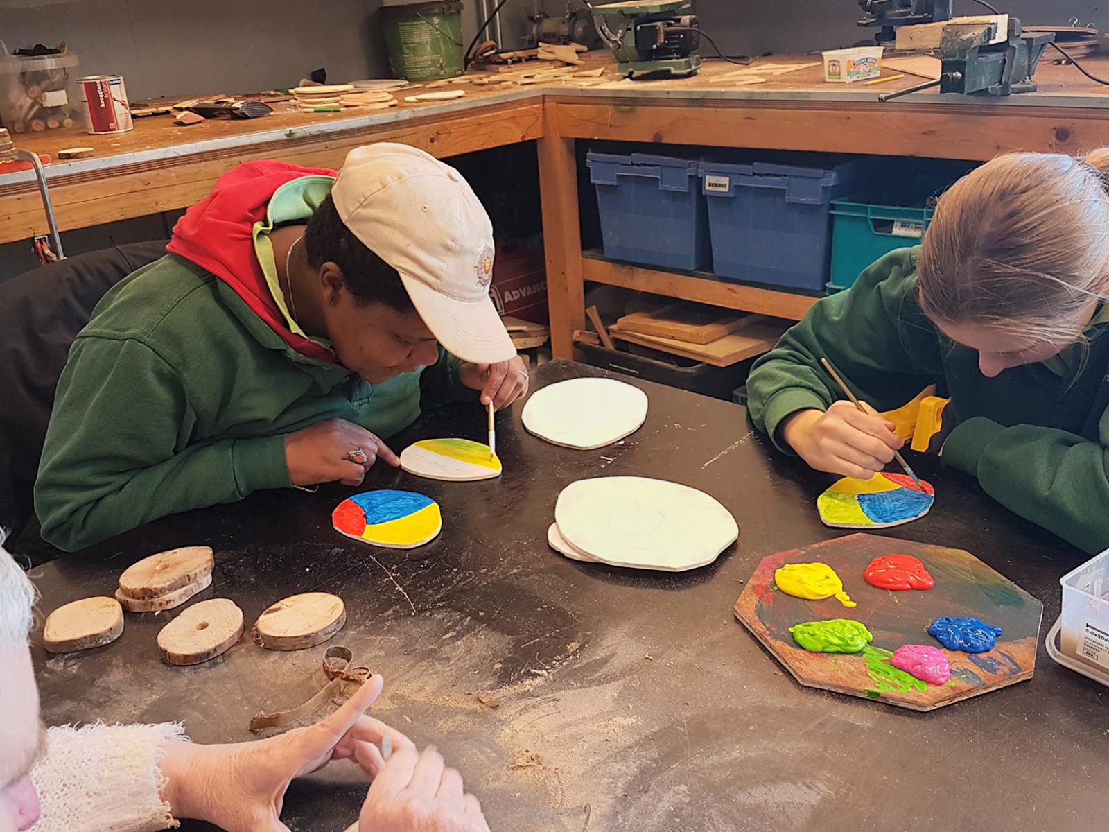 Op de foto zijn Maureen en Nienke druk bezig met de voorbereidingen van de speurtocht. Ze schilderen de eieren die gezocht moeten worden.