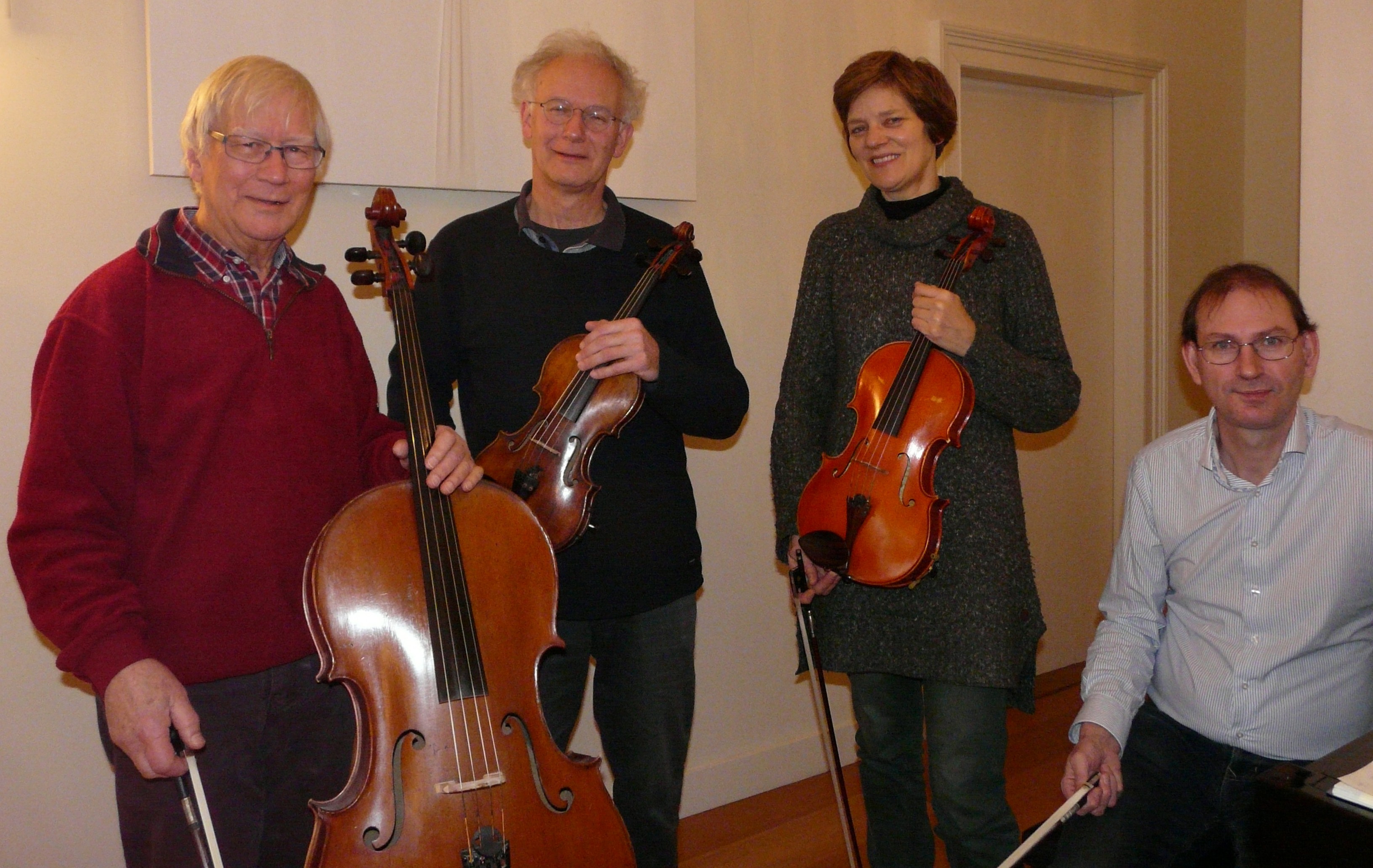 Hans Rijkmans raakte al vroeg vertrouwd met kamermuziek en kreeg vioolles aan het Sweelinck Conservatorium Amsterdam bij Bouw Lemkes. Als violist en als altviolist speelde hij onder andere bij de Amsterdamse Bachsolisten en het Nederlands Kamerorkest. Anna Wiersum studeerde bij Herman Krebbers viool en altviool aan het Sweelinck Conservatorium in Amsterdam en aan de Menuhin Academy in Zwitserland. Wiersum kreeg als 16-jarige de Burgemeester de Bruinprijs van de Gemeente Rheden en mocht toen als solist optreden met Het Gelders Orkest. Zij is één van de eerste violen van Het Gelders Orkest, tegenwoordig het fusieorkest Phion (HGO samen met het Orkest van het oosten). Frank Lange studeerde Frans en was docent aan een middelbare school, het Conservatorium in Utrecht en de Hoge School Midden Nederland. Hij studeerde cello bij Robert Dispa en bij Jean Decroos en was enige jaren cellist in Het Gelders Orkest en cursusleider bij de Vereniging voor Huismuziek. Hij studeerde orkestdirectie en was als dirigent verbonden aan het Gewestelijk Symfonie Orkest te Cuijk. Hans-Erik Dijkstra studeerde piano aan het toenmalige Twents Conservatorium (nu ArtEZ) in Enschede. Dijlkstra studeerde piano bij Tamara Pospiszyl en compositie bij David Rowland en studeerde cum laude af. Hij werd correpetitor aan het Koninklijk Conservatorium te Den Haag en werkte onder andere als begeleider voor het Toonkunstkoor Arnhem en het Bachkoor Apeldoorn. Momenteel is hij ook als pianodocent verbonden aan de muziekscholen te Doetinchem en Barneveld.