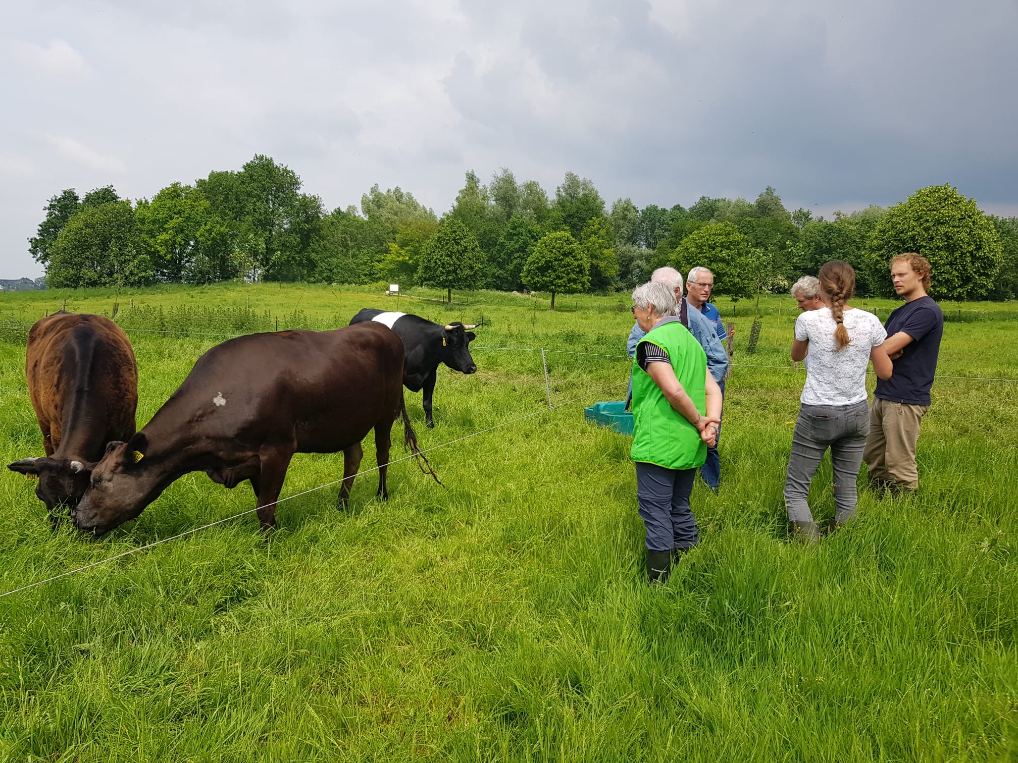 Op de vorige werkdag in mei hebben vrijwilligers een rondleiding gekregen en kennisgemaakt met de bijzondere dieren op De Houberg: de Lakenvelder en Wagyu koeien, Mangalica varkens en uitloopkippen. Daarna zijn de wormen geteld op verschillende plekken op het terrein. De start van de allereerste monitoring!