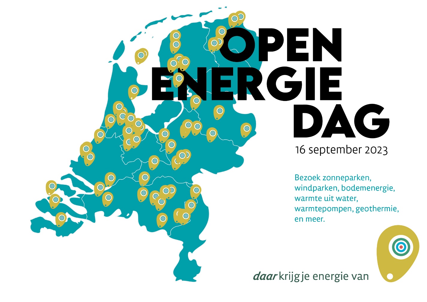 De Open Energiedag wordt dit jaar voor de derde keer gehouden en is te bezoeken op meer dan zestig locaties. Denk bijvoorbeeld aan het allereerste drijvende zonnepark van Nederland en een fietstocht langs een duurzaam warmtenet. Op www.openergiedag.nl vind je alle locaties door heel Nederland die op 16 september hun deuren openen.