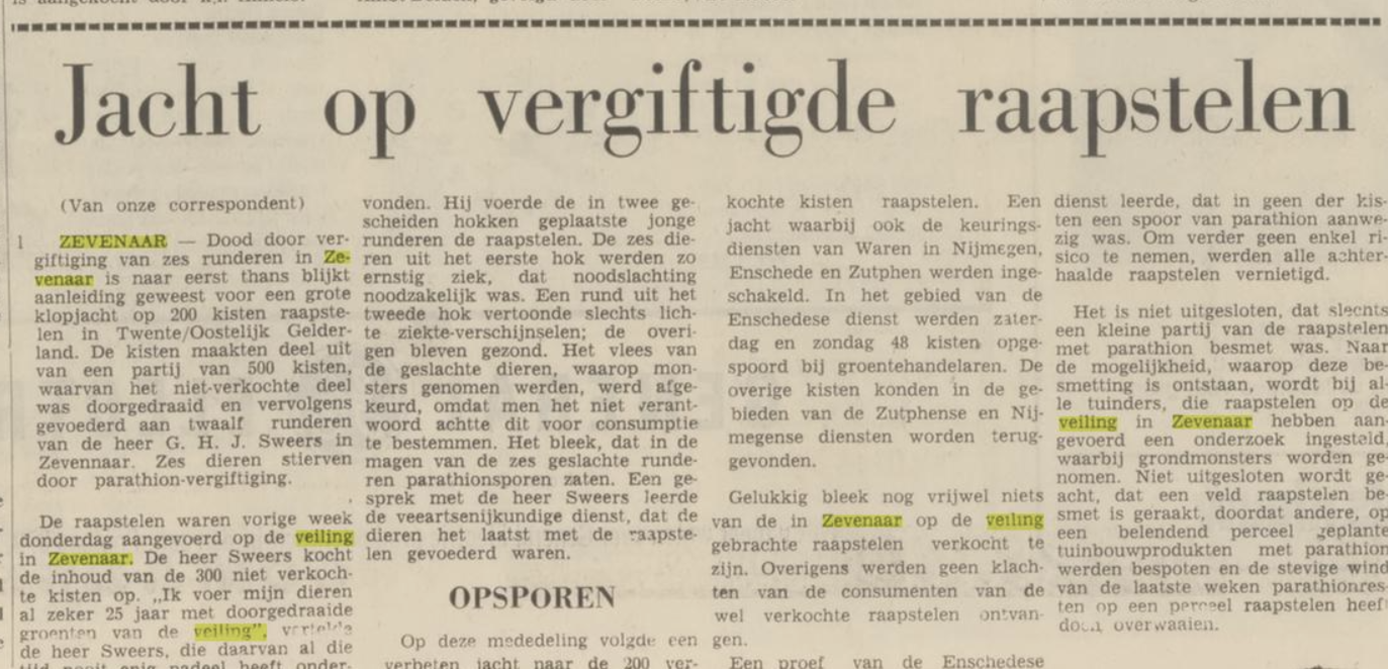 Het had dus ook heel anders kunnen uitpakken. Als de kist met vergiftigde raapstelen in de winkels terecht was gekomen, had het heel veel mensenlevens gekost. Het voorval was in die tijd landelijk nieuws. Tubantia, Algemeen Handelsblad en de Telegraaf brachten het nieuws op de voorpagina.