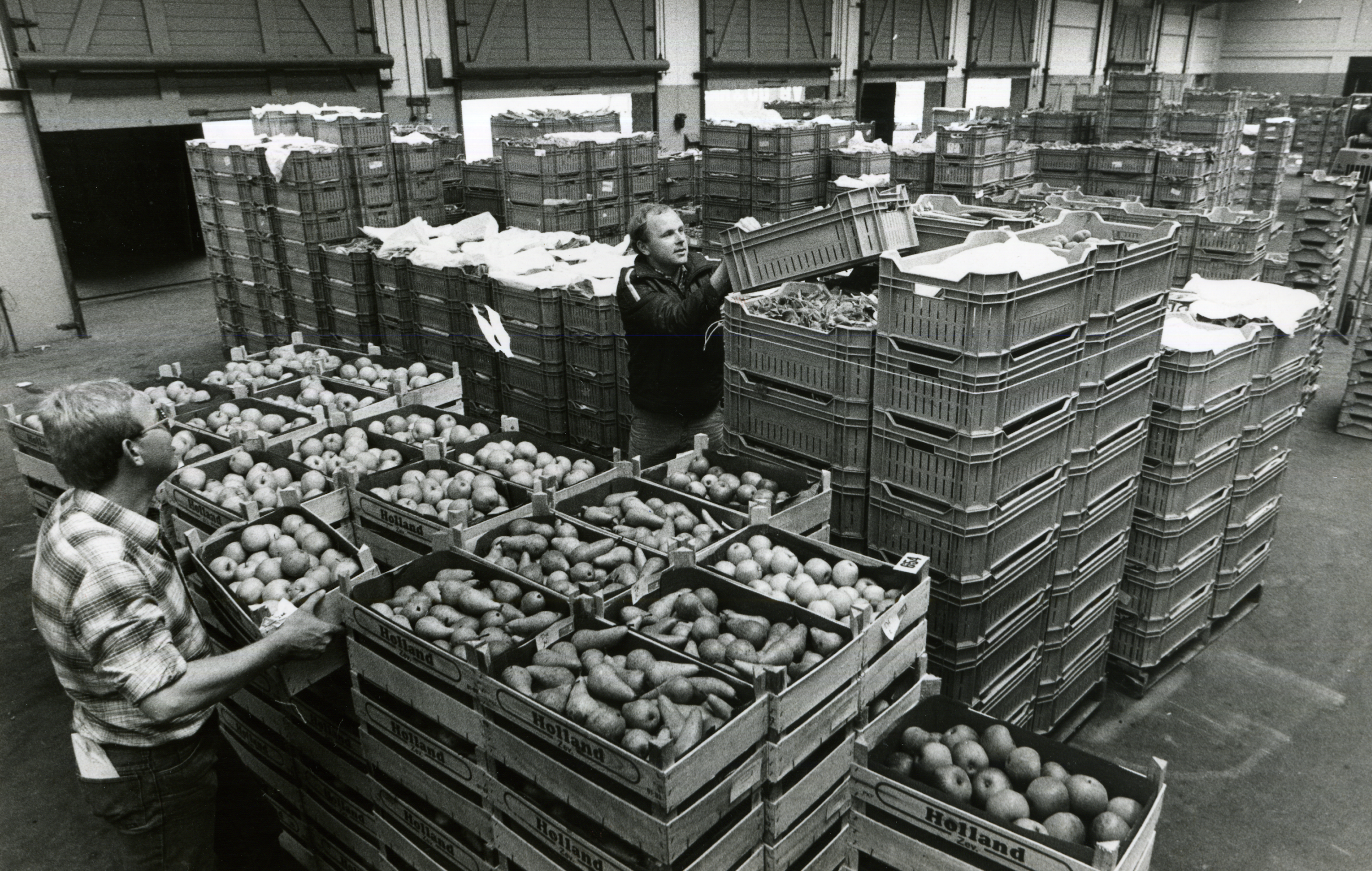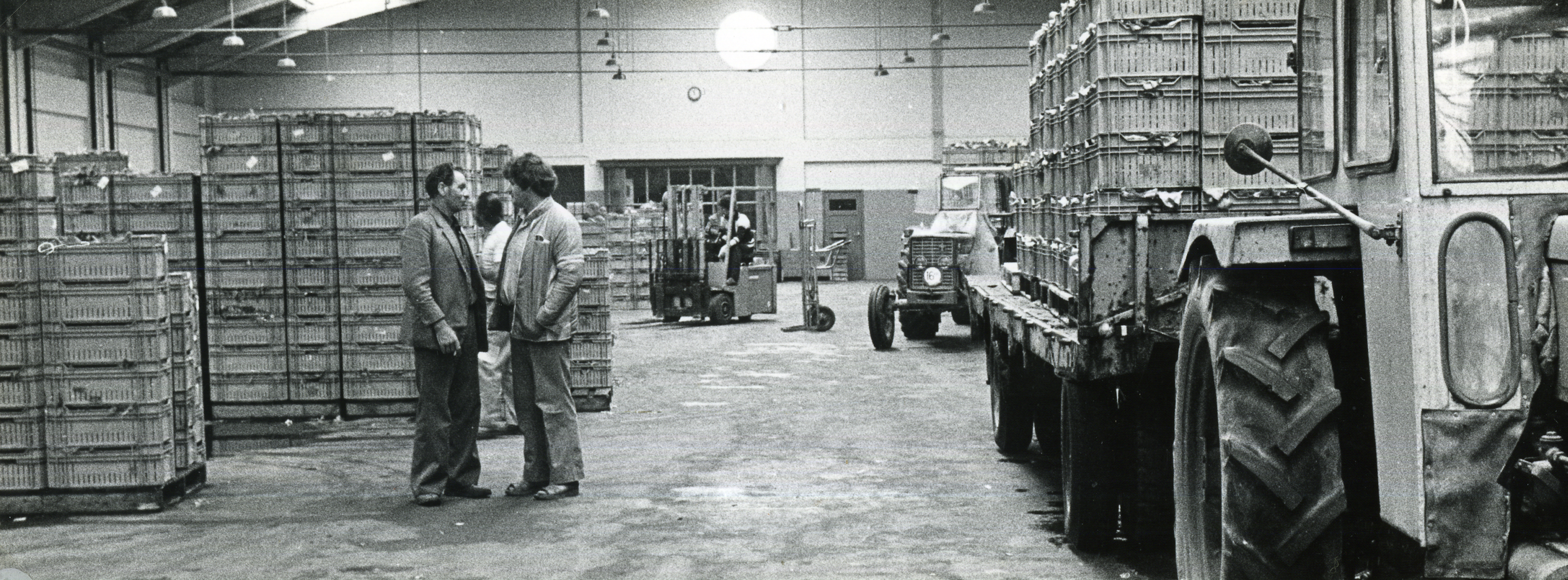 —–Ook werden er vanaf dat moment verpakte groenten en fruit verhandeld. Ik veronderstel dat hier niet bedoeld wordt het verpakken zoals dat heden ten dage geschied maar de kwekers voerden hun produkten aan in veilingkisten. Voordien waren manden en kisten in gebruik om de groenten aan te voeren.
