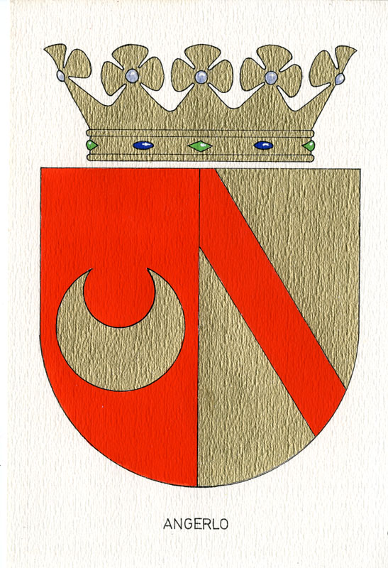 Schildering op papier van het gemeentewapen van de voormalige gemeente Angerlo circa 1980-1988. Dit was het gemeentewapen van Angerlo van 27 oktober 1924 tot de gemeentelijke herindeling in 2005.