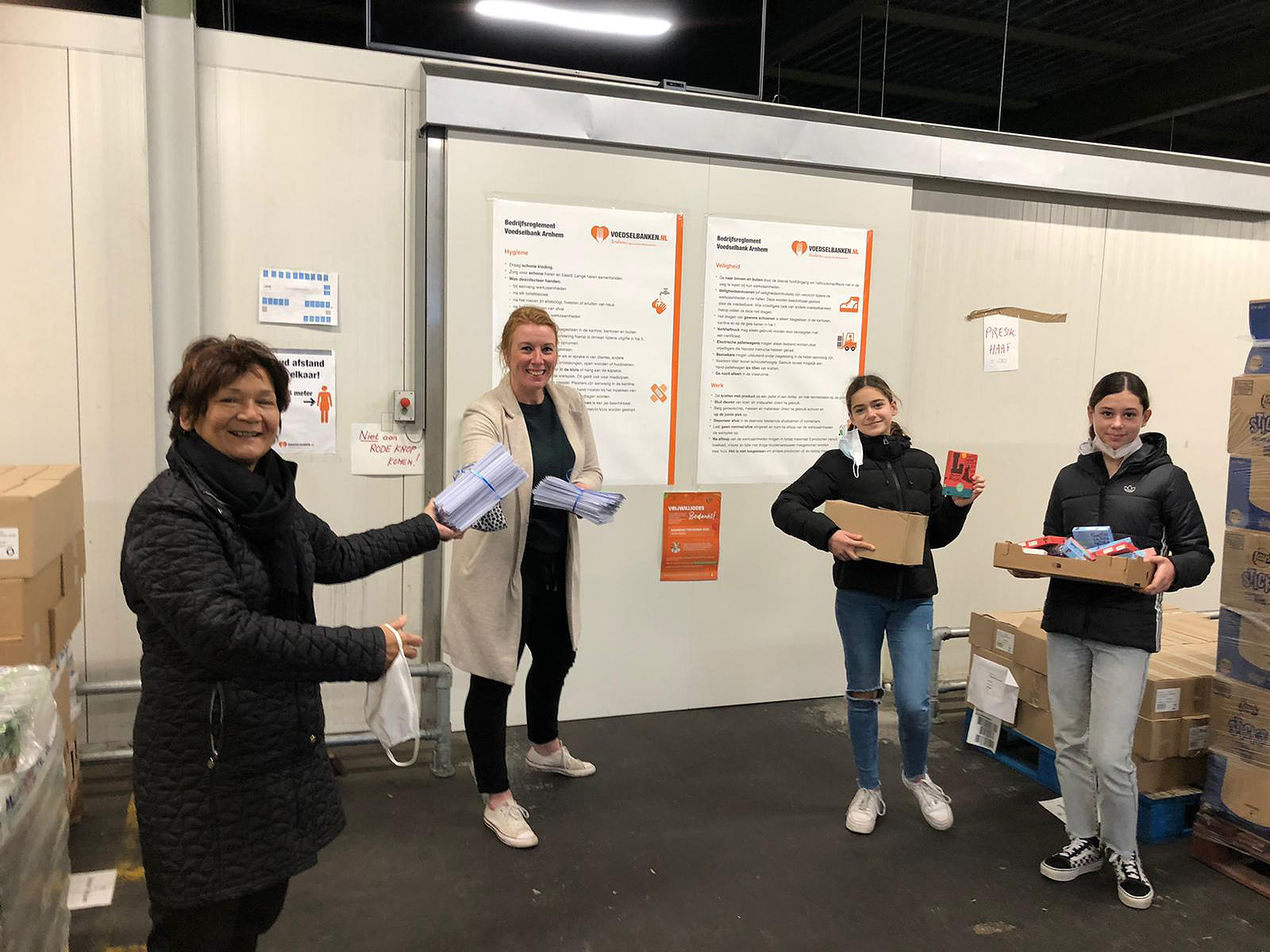 Coördinator Arlène Berends van Voedselbank Arnhem ontving de scholieren en was enorm verrast met alle donaties. “Wat een fantastisch gebaar! Hier maken jullie heel veel gezinnen en kinderen ontzettend blij mee. En deze mensen kunnen lichtpuntjes als dit zo goed gebruiken, zeker nu. Dank jullie wel.”
