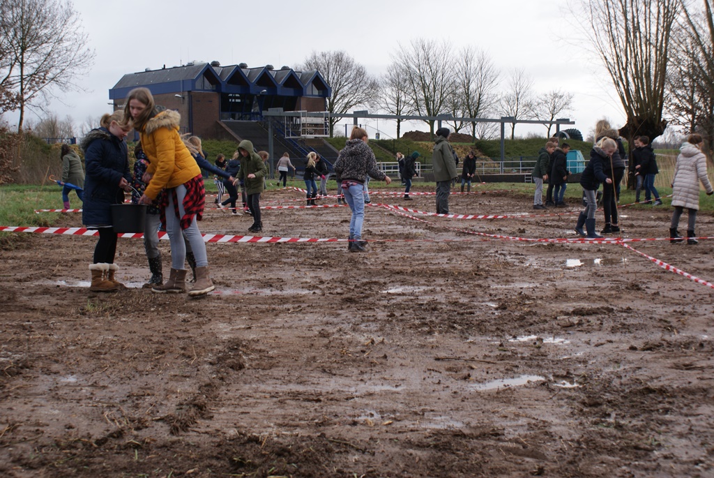 Donderdag 14 maart zaaien schoolkinderen in Ulft een terrein in van het Waterschap naast de Oude IJssel.