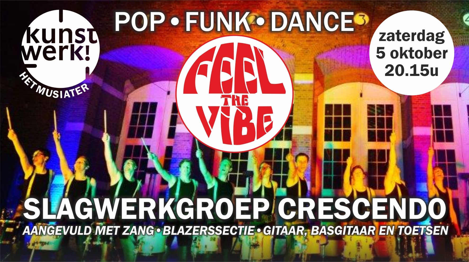 Swingende popmuziek, spectaculair slagwerk en hedendaagse housemuziek gecombineerd met moderne slagwerkcomposities. Slagwerkgroep Crescendo wordt bij dit programma aangevuld met zangeressen, een blazerssectie en een combo bestaande uit gitaar, basgitaar, toetsen en drums. “De combinatie van slagwerk met blazers en zang geeft een unieke sound,” aldus dirigent John Sonderen, die de leiding heeft over de groep fanatieke slagwerkers. Sonderen: “We hebben een doorlopend programma ontwikkeld, dat je gehoor prikkelt en een lust is voor het oog. Je gaat het zelfs voelen; het programma heet dan ook ‘Feel the Vibe’.”