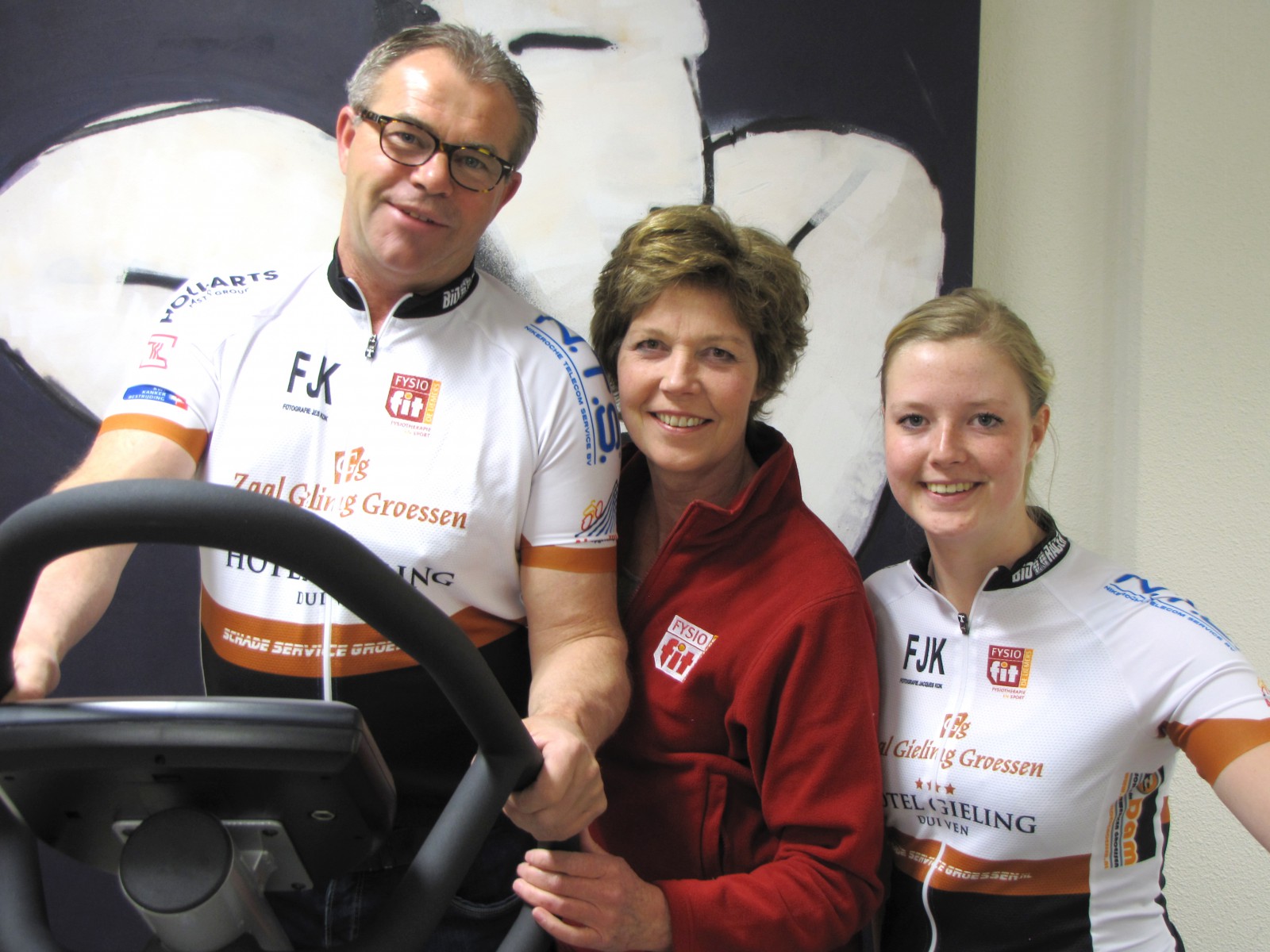 Toen Sjon Gieling van Team Duiven ook dit jaar weer aanklopte voor sponsoring van Team Duiven bij Josée Veneklaas van Fysiofit de Liemers, was het antwoord helder. ‘Natuurlijk doen wij weer mee, de strijd tegen kanker blijft belangrijk en wij ondersteunen het motto ‘Opgeven is geen optie’ graag’, aldus Josée. ‘In onze dagelijkse praktijk stimuleren wij mensen actief te blijven, niet alleen vanwege hun conditie, maar ook vanuit sociaal oogpunt. Daarom organiseren wij op 6 mei een wandeltocht voor iedereen. Ook mensen die gebruik maken van een scootmobiel of rolstoel zijn van harte welkom. Na de wandeling sluiten we de middag af met soep en een broodje.’