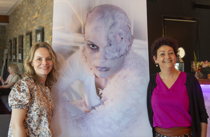 ZEVENAAR – In de foyer van theater Het Musiater is zondagmiddag een grote wens in vervulling gegaan van grime- en special make-up artiest Ellen Keurntjes uit Tuindorp (Tolkamer). De foto’s van tien creaties die ze de afgelopen jaren heeft gerealiseerd waren op groot formaat plexiglas tentoongesteld tijdens een eenmalige mini expositie, die door vrienden van de 51-jarige creatieveling als verrassing was georganiseerd.