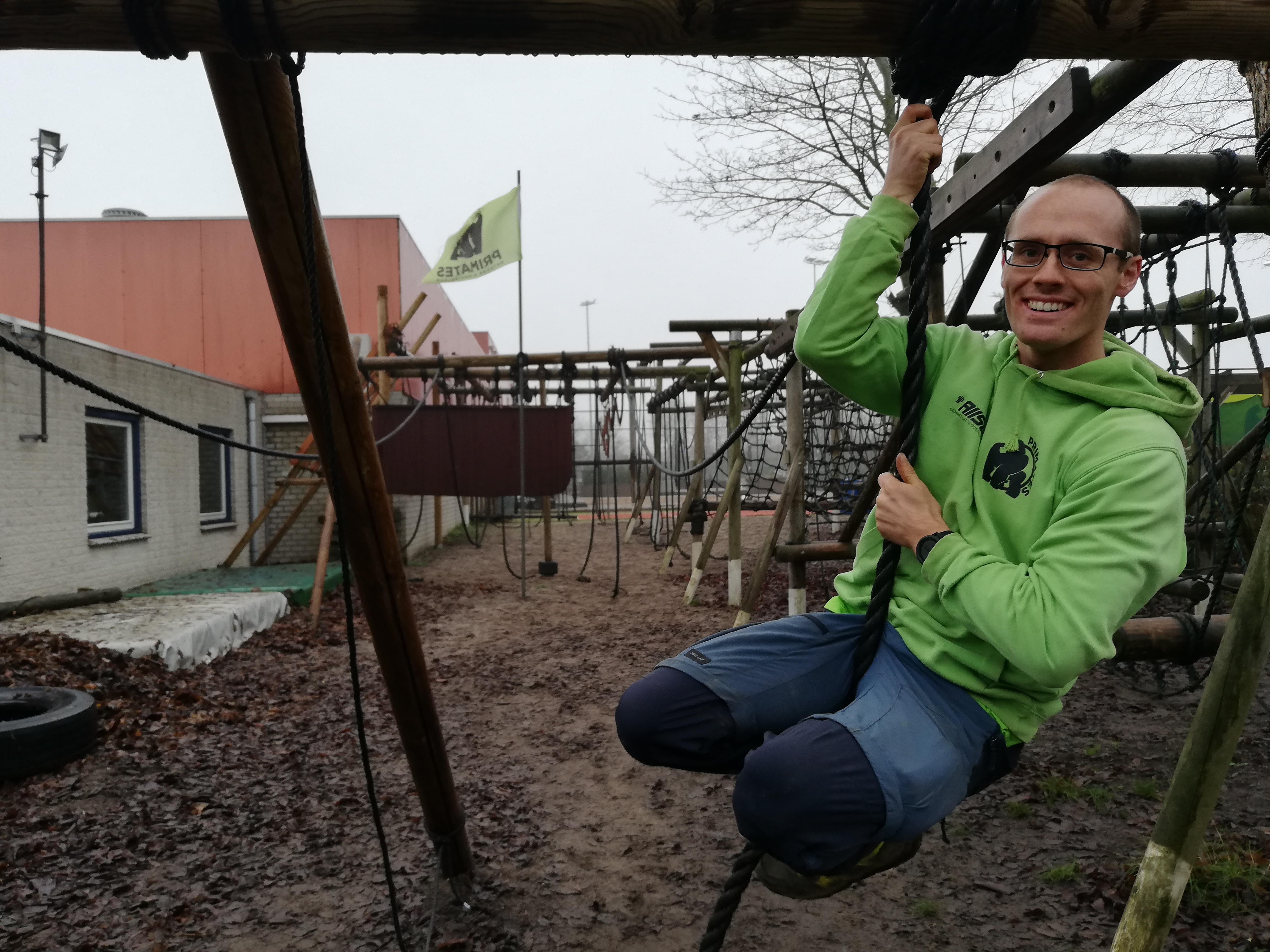 “Op mijn zestiende begon ik met het geven van trainingen en het verzorgen van kinderfeestjes, bij een buitensportbedrijf. Eerst vond ik lesgeven helemaal niks. Langzamerhand ben ik er ingegroeid en nu doe ik het met veel plezier. Primates verzorgt diverse buitensportarrangementen voor verschillende doelgroepen, van scholen en kinderen tot volwassenen en bedrijven. We hebben een divers aanbod van teambuildingsopdrachten, survivalrun, bootcamp, boogschieten en archery tag. Dit doen we op onze eigen locatie bij Gezondheidscentrum Bent Sports of op externe locaties, zoals de Breuly.”