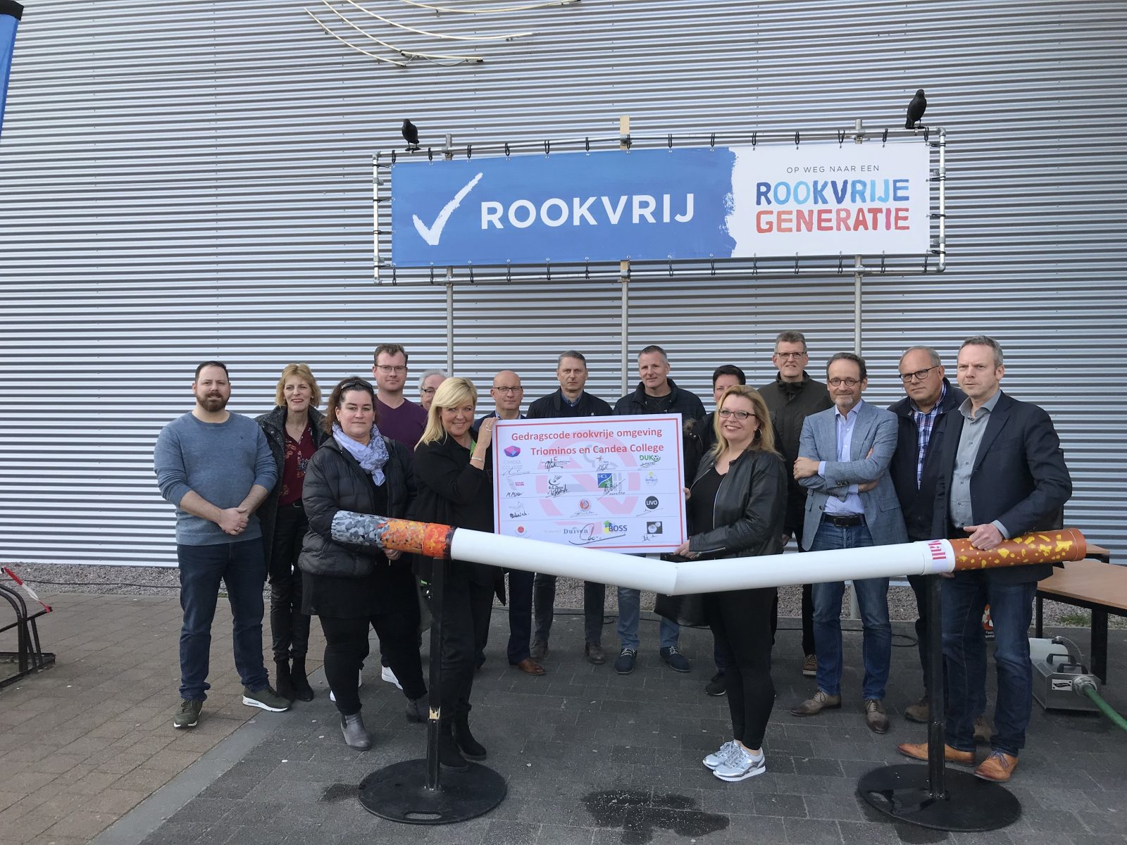 HomeTerrein rondom Triominos en Candea College rookvrij gemaakt!Ondertekening gedragscode Triominos en Candea College