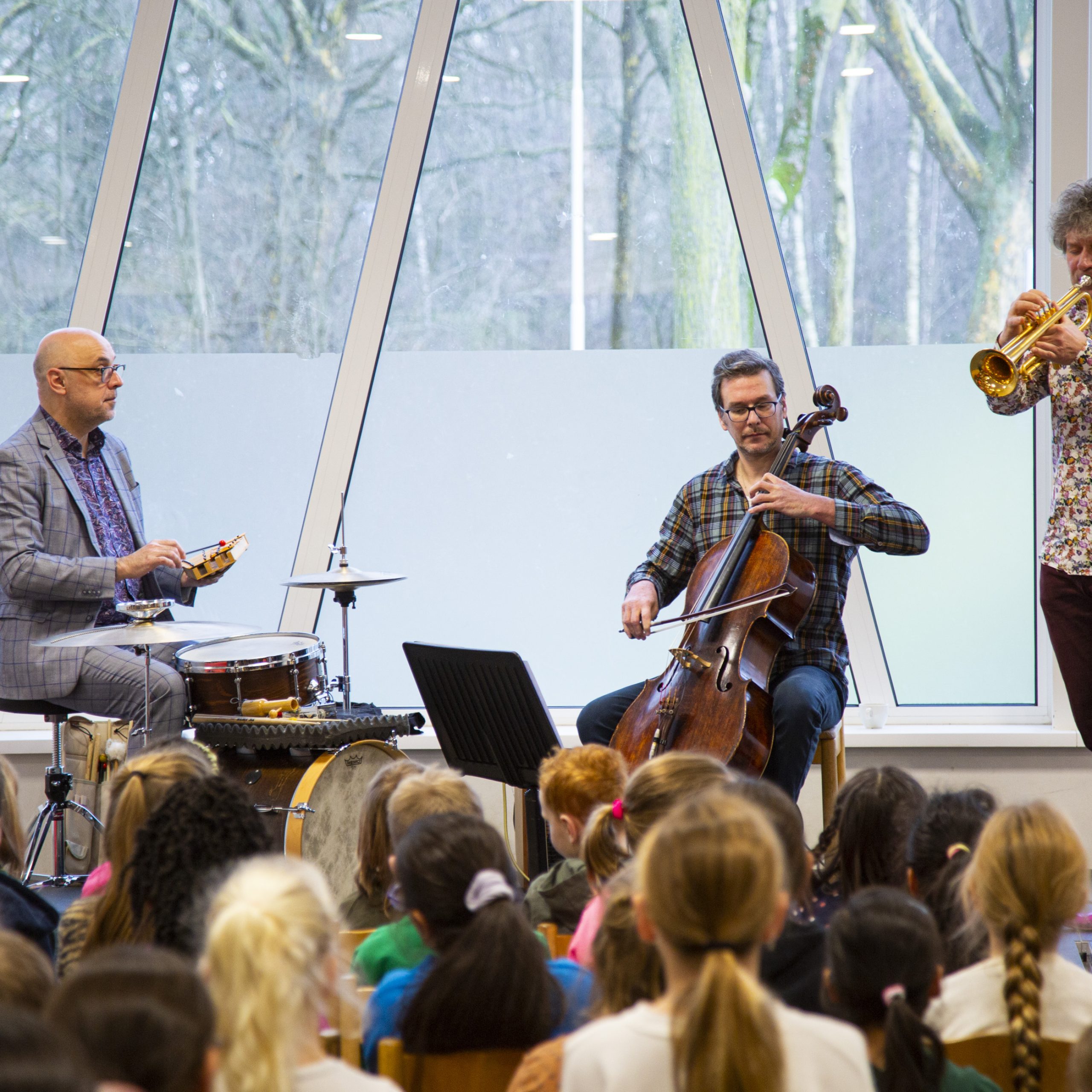 HomeTrompettist Eric Vloeimans (rechts op de foto) is een verklaard voorstander van muziekonderwijs op jonge leeftijd – foto Peter Bakker _ Apart Fotografie