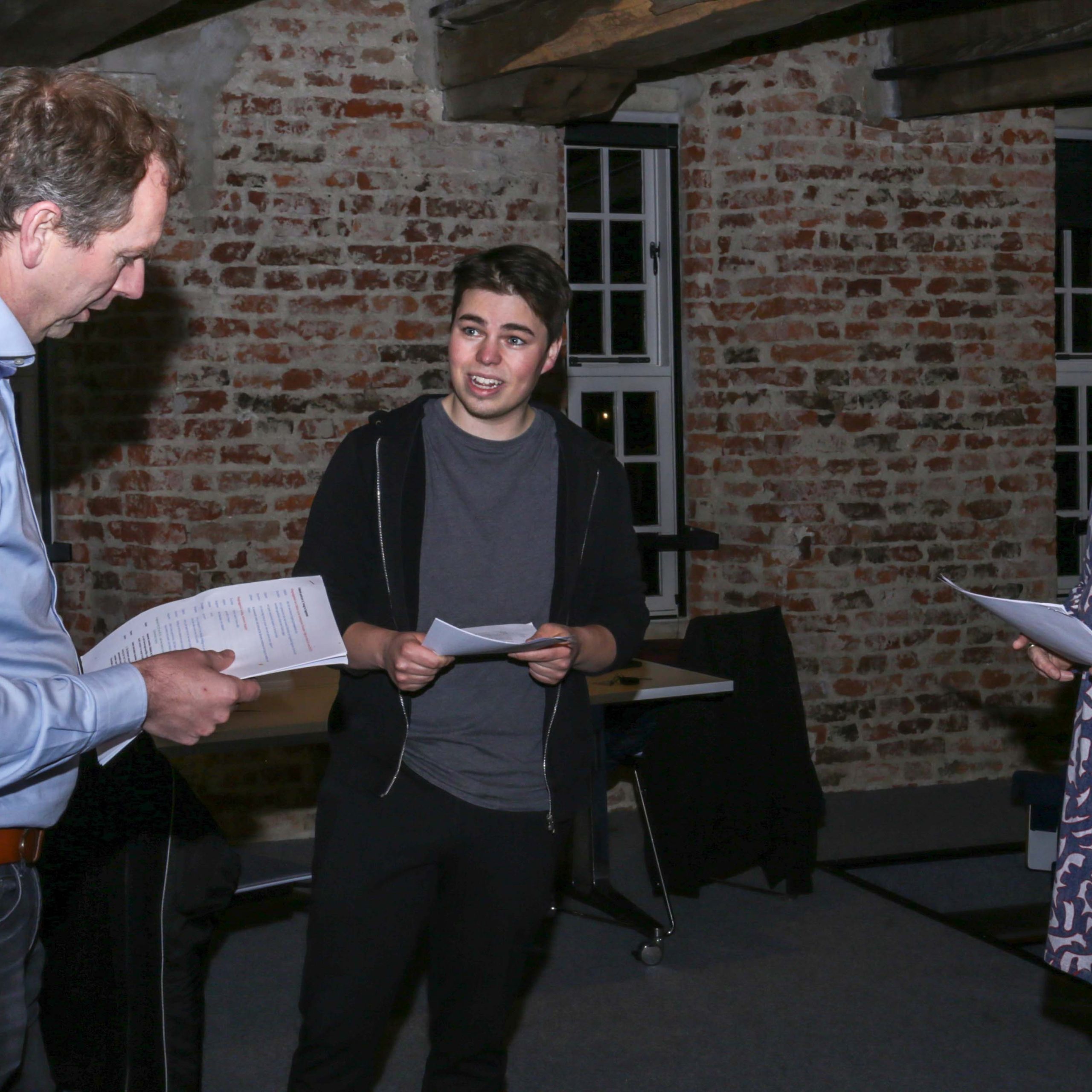 Een deel an het podcastteam tijdens de repetitie in Het Arsenaal – foto PR Doesburg Vertelt