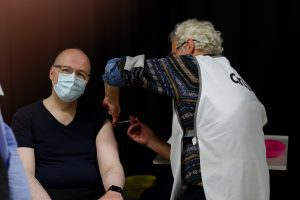 Wethouder Jan Derksen ontvangt herhaalvaccinatie