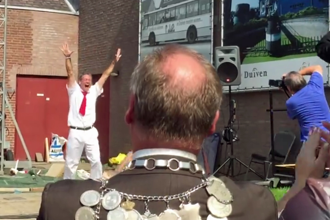 Eddy Peer is de nieuwe koning van Schutterij Onderling Genoegen in Duiven. Met het 126e schot schoot hij de vogel tijdens het schuttersfeest naar beneden. Samen met echtgenote Jeanne vormt hij het nieuwe koningspaar. Samen vertegenwoordigen zij als koningspaar de schutterij het komende jaar. Het wordt een bijzonder jaar, de schutterij verhuist namelijk eind september naar haar nieuwe onderkomen de OGTenT. Daarnaast viert de schutterij in juni 2016 haar 120-jarig bestaan.Een videoimpressie van Henk Nijland (eerste film) en Tinus Klikpedaal (tweede).