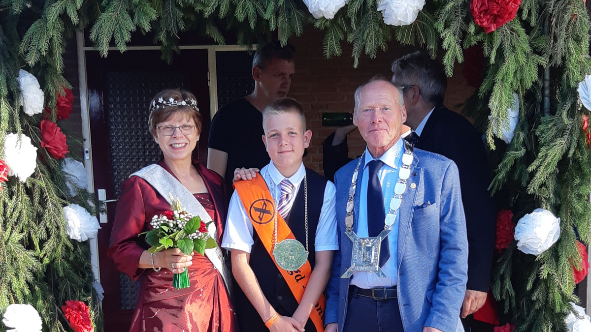 Het koningspaar Gerard & Ans Polman, met in hun midden onze huidige jeugdkoning Koen van Onna.