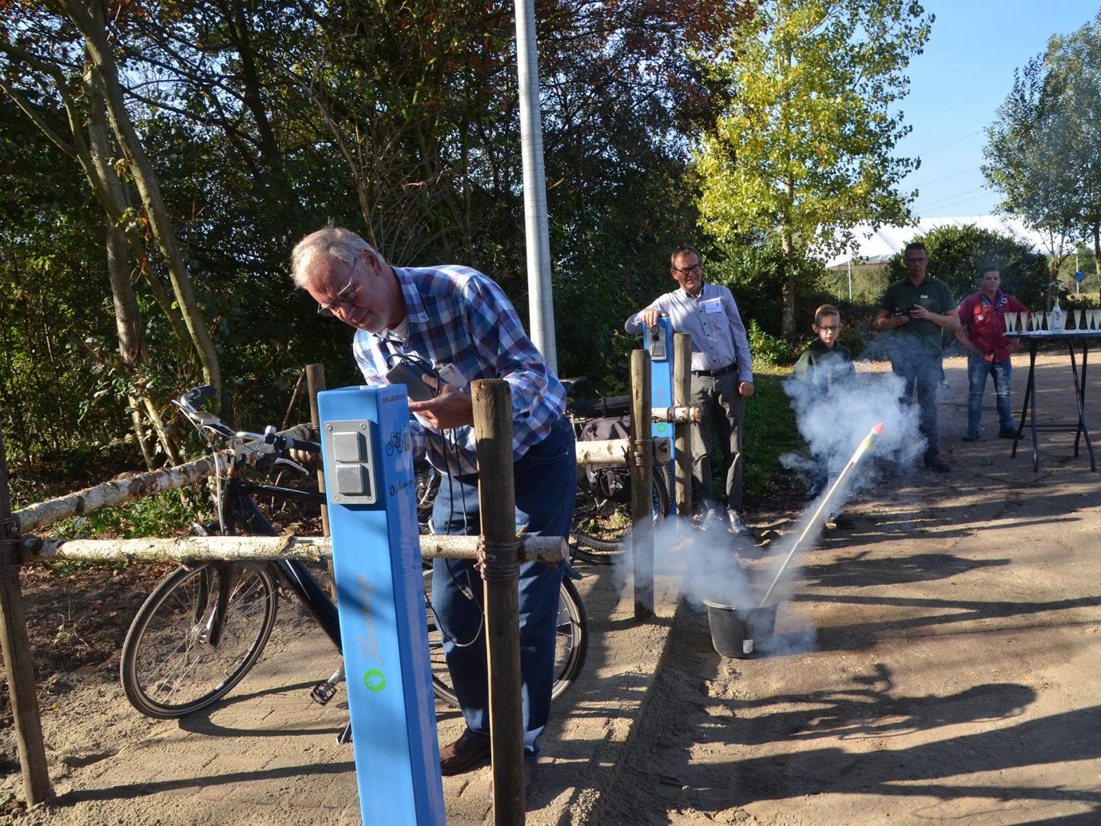 Met het aansluiten van twee elektrische fietsen en het afsteken van een vuurpijl werd de openingshandeling ludiek luister bij gezet. ‘Er is met deze laatste handeling een fantastisch startpunt gecreëerd voor de vele fiets- en wandelroutes die langs de Waay lopen. Op de Loodijk tussen de Lijkweg en het Kandiakanaal is er keuze genoeg voor iedereen die fietsend of wandelend van de omgeving wil genieten’ aldus Theo Kampschreur, voorzitter van de projectgroep Natuur & Recreatie. De voorzitter van Dorpsraad Loo, Jan Rasing, roemde de samenwerking tussen beide Dorpsraden, de Scouting, de buren van de Waay, gemeente en provincie: ‘Alleen door samen te werken, kon dit project gerealiseerd worden. Het heeft even geduurd, maar alle partijen zijn er blij mee’.