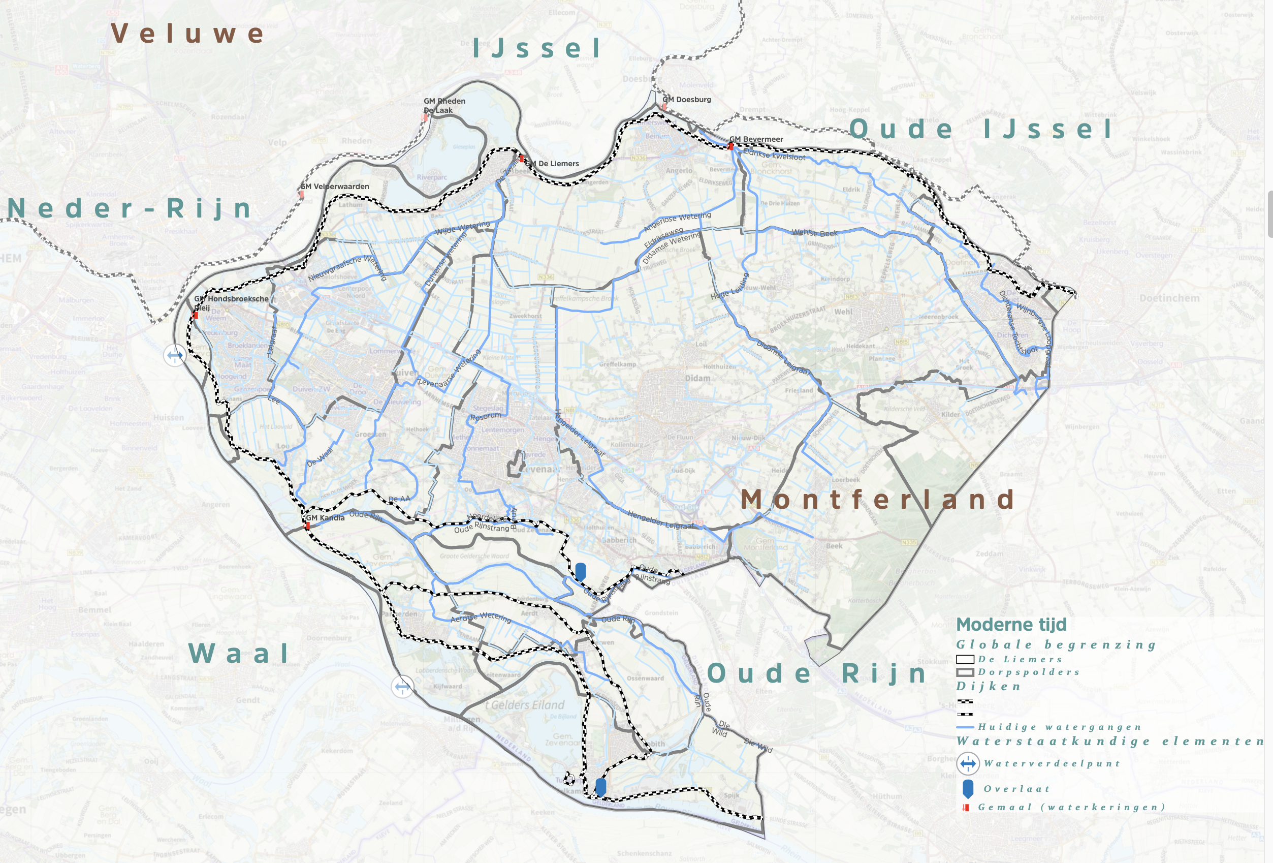 werden aangelegd bij Giesbeek en Pannerden. Vervolgens zijn tijdens de ruilverkaveling nieuwe grootschalige ingrepen gepleegd. Oude weteringen werden verbreed en nieuwe gegraven. Ook is in deze periode (1965) bij Angerlo een nieuw gemaal gebouwd (Bevermeer). Met al deze ingrepen was de afvoer van het binnenwater gewaarborgd. Maar daarmee lijkt de strijd tegen het water in de Liemers en het Gelderse Eiland nog niet gestreden. Met de stijgende rivierstanden, de toenemende piekafvoeren en de perioden van droogte staan nieuwe uitdagingen voor de deur. Uitdagingen die in de toekomst vrijwel zeker nieuwe hoofstukken gaan toevoegen aan de Waterbiografie van De Liemers.