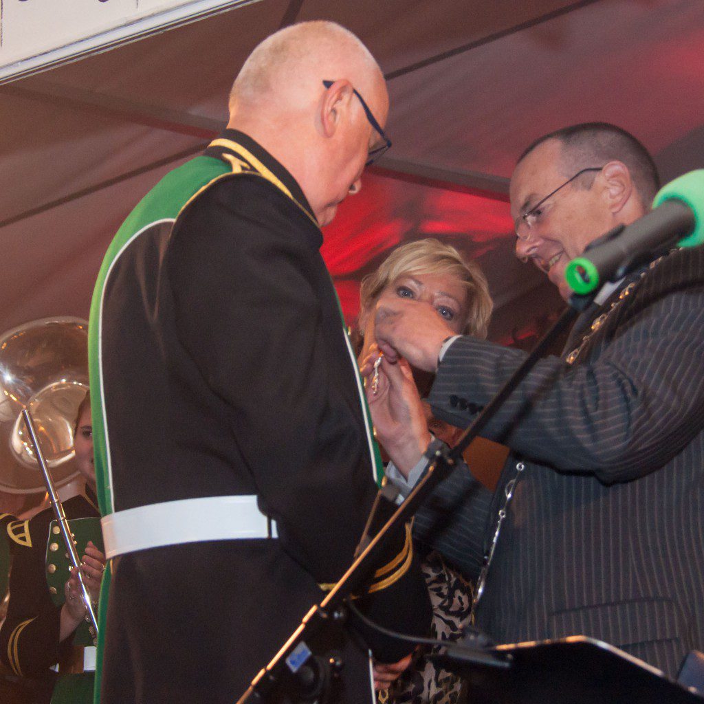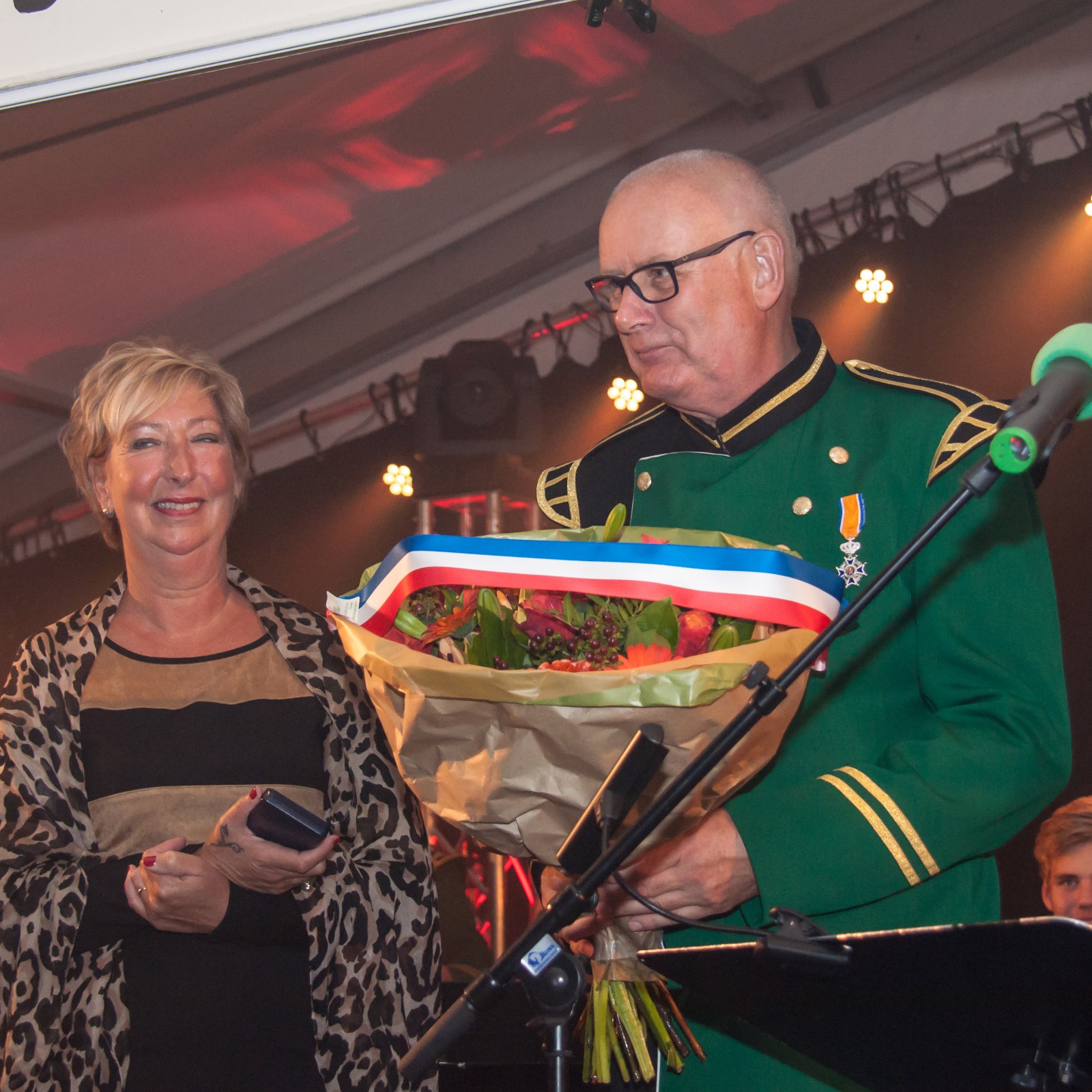 Tijdens de uitvoering van Groessen in Concert op zaterdag 1 oktober is Wim Holland, voorzitter van KDO, koninklijk onderscheiden. Hij ontving deze onderscheiding voor zijn grote maatschappelijke verdiensten. Wim is 27 jaar bestuurslid van Showband KDO, waarvan ruim 17 jaar voorzitter. Daarnaast is hij 25 bestuurslid van Stichting Organisatie Evenementen K.D.O. Groessen, de organisatie die al 25 jaar tekent voor Feestweek Groessen. Wim Holland wordt vooral geroemd om zijn verbindend vermogen. Tijdens zijn bestuurders schap is KDO enorm gegroeid, zowel in ledenaantal als in niveau. Het valt tijdens zo’n groeispurt niet mee om altijd alle neuzen dezelfde kant op te krijgen maar Wim is een meester in het creëren van teamgeest. Hij is een mensenmens die oprecht en persoonlijk belangstelling heeft in lief en leed van leden en familie van leden. Zijn verbindend vermogen komt ook in uitdrukking in de uitstekende onderlinge verhoudingen van de drie Groessense muziekverenigingen. Die verhoudingen zijn beter dan ooit tevoren en dat is een grote verdienste van Wim Holland maar natuurlijk zijn de bestuurders van die andere verenigingen daar eveneens debet aan. Ook dankzij zijn niet aflatende inzet wordt dit jaar Feestweek Groessen georganiseerd. Een evenement met een grote regionale uitstraling.